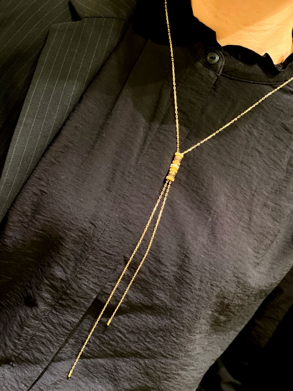 このネックレスの一番の魅力は、何といってもスライドする「タイネックレス」であること。
