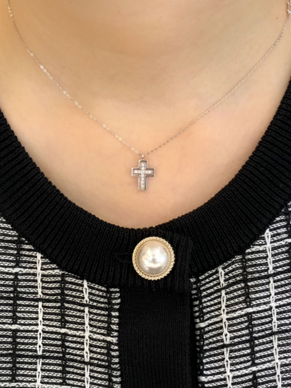 中心部にセットされたダイヤが印象的なネックレスです。