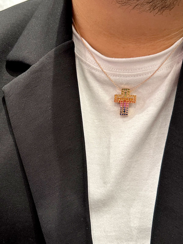 ピンクゴールド素材に、レインボーのサファイアが鮮やかに彩ります✨