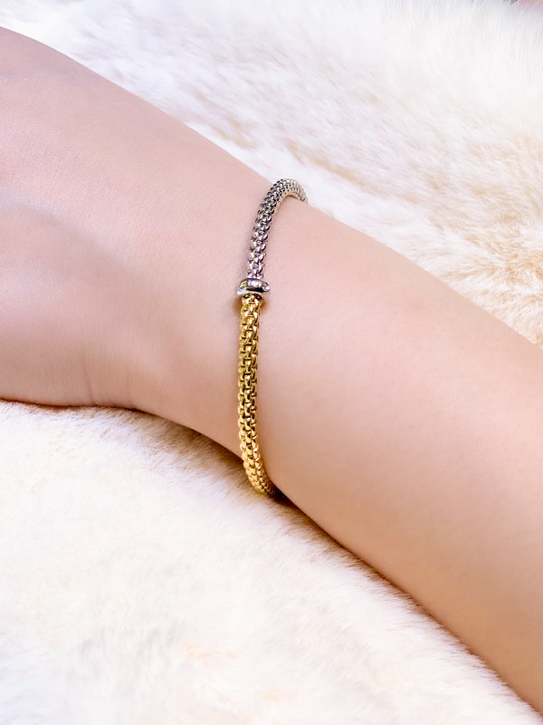 品名(ブレスレット):PRIMA MUST-HAVE BICOLOR FLEX’IT/品番:01M08B2_BB_00M/素材:K18ゴールド、0.01ctダイヤモンド/税込価格:368,500円