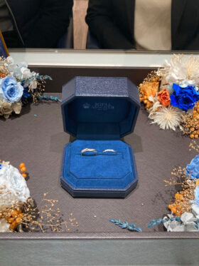 銀座本店につぐ、路面店であるロイヤル・アッシャーブティック名古屋では、ご注文の時だけでなく、お引き渡しの際もお2人思い出残るよう、様々な演出をしております。