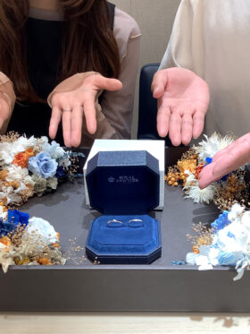 お2人、それぞれにお好きなデザインをお選びいただき、どちらもお似合いのマリッジリングをご用意することができました!