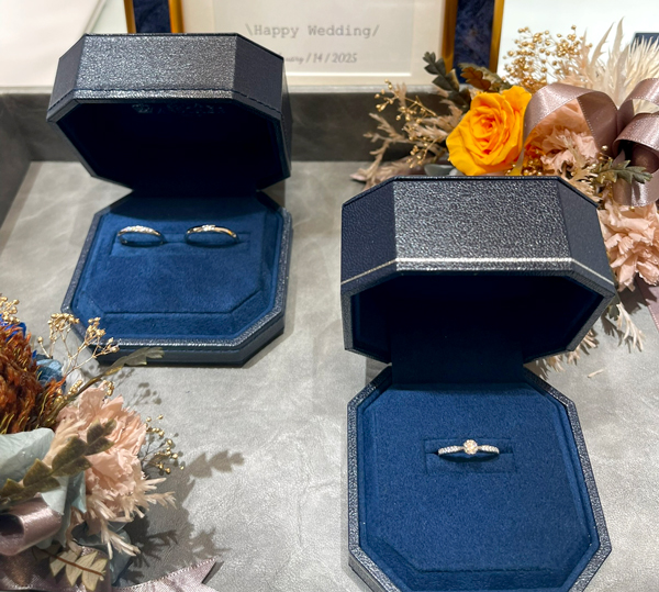 台座が花弁のように柔らかいデザインで、お相手様の印象にピッタリでございました✨