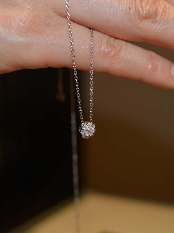 このペンダントは5石のダイヤモンドを贅沢に使い、