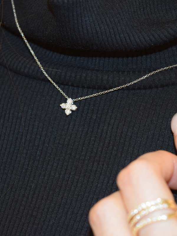 胸元で光を受けるたび、本物の花が風に揺れて輝くような