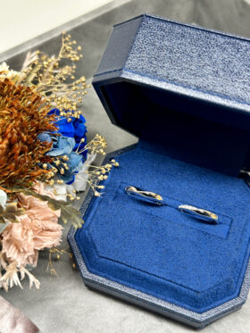 お選びいただいたマリッジリングはアーム中央にロイヤル・アッシャーのダイヤモンドが5石あしらわれ、白く上品な輝きを静かに放ちます✨