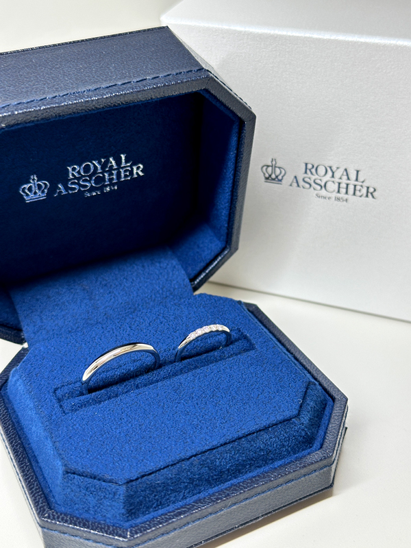 あわせてM様にお選びいただいたのは最高純度99.9%の純プラチナを使ったマリッジリング「ロイヤル・アッシャー ピュールプラチナ」。
