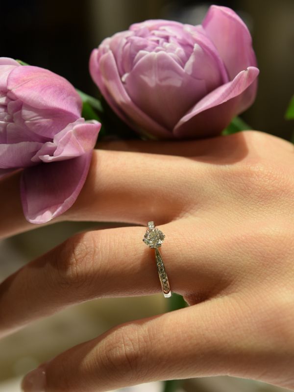 横から見たときに、ふっくらとダイヤモンドを包み込むシルエットは、まさに可憐なチューリップそのもの