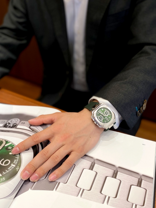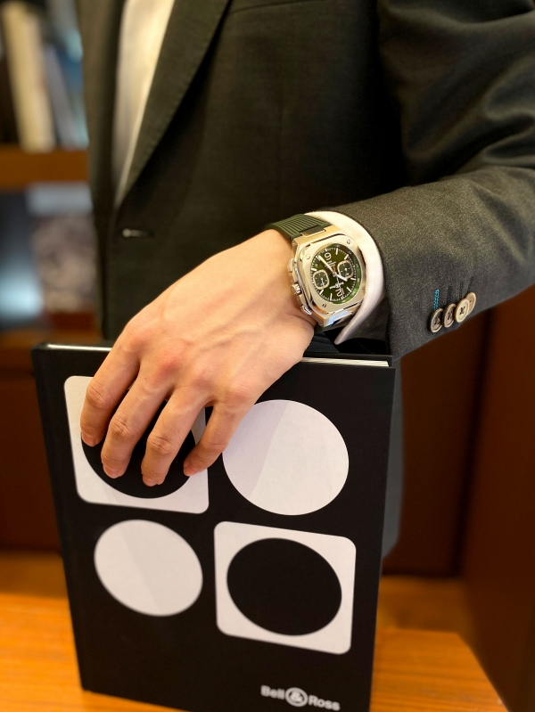 セットアップに忍ばせる、知的なグリーン/ベルロス BR-05クロノ グリーン スティール/BR05C-GN-ST/SRB
