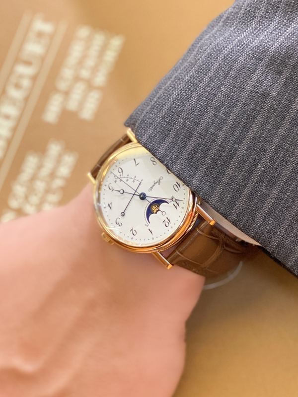 ムーンフェイズ、パワーリザーブインジケーターが搭載されたブレゲの「クラシック」。