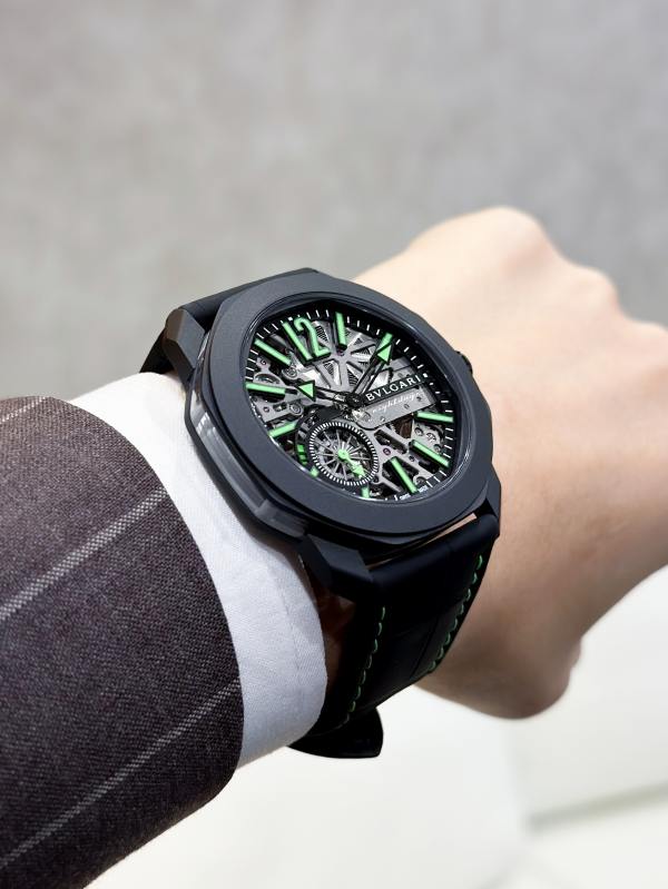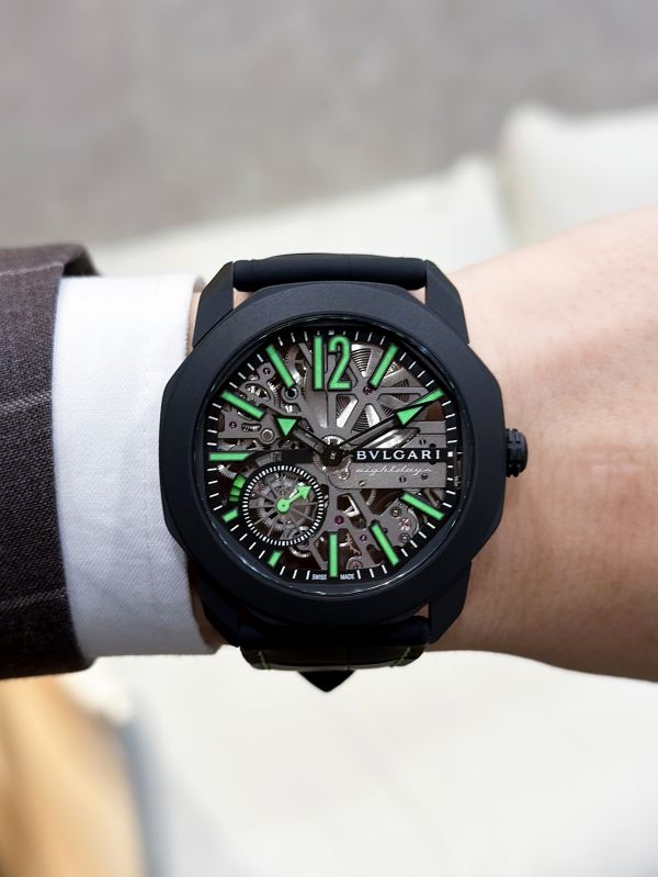 また、グレーにコーティングされたスケルトンブリッジなど、非常に洗練された仕上げとなっているところもブルガリの拘りが感じられます。
