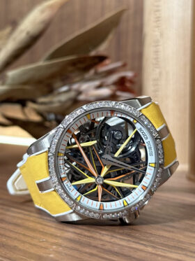 ケースのサイドにはダイヤモンドがセッティングされ、高級感を纏った特別なモデル。