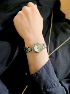 今回ご紹介している28mmモデルは、女性の腕元に寄り添う絶妙なサイズ感。クォーツムーブメントを搭載しているため、忙しい毎日でも扱いやすく、常に正確な時を刻んでくれます。