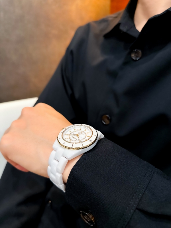 シャネルのアイコン「J12」に登場した、ホワイトセラミック×ゴールドのコンビネーションが気分を上げてくれる1本です。