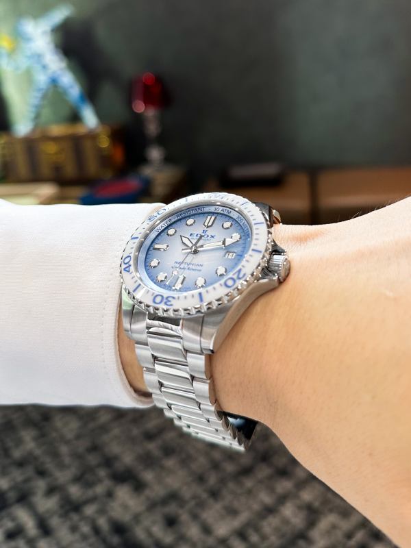 品名:ネプチュニアン グランデ リザーブ デイト オートマティック/品番:80801-3BBUM-BUCDN/ムーブメント:自動巻き EDOX808 /ケース:316Lステンレススティール /ケースサイズ:42mm/防水:30気圧/パワーリザーブ:68時間/税込価格:341,000円(2024年5月現在の価格です)