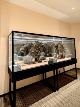 明治神宮の宝物殿にて、日本の伝統的な守護の象徴である「狛犬」をモチーフに出展されたものです。