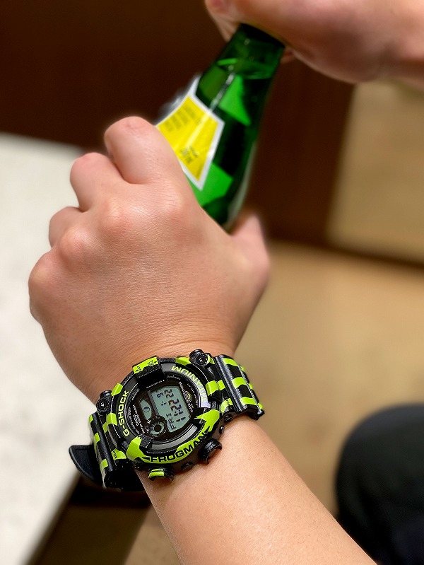 もちろん、200m潜水用防水を誇るフロッグマン。ビーチリゾートで映えるのはもちろんのこと、シュノーケリングなどのアクティビティでもその威力を発揮します。