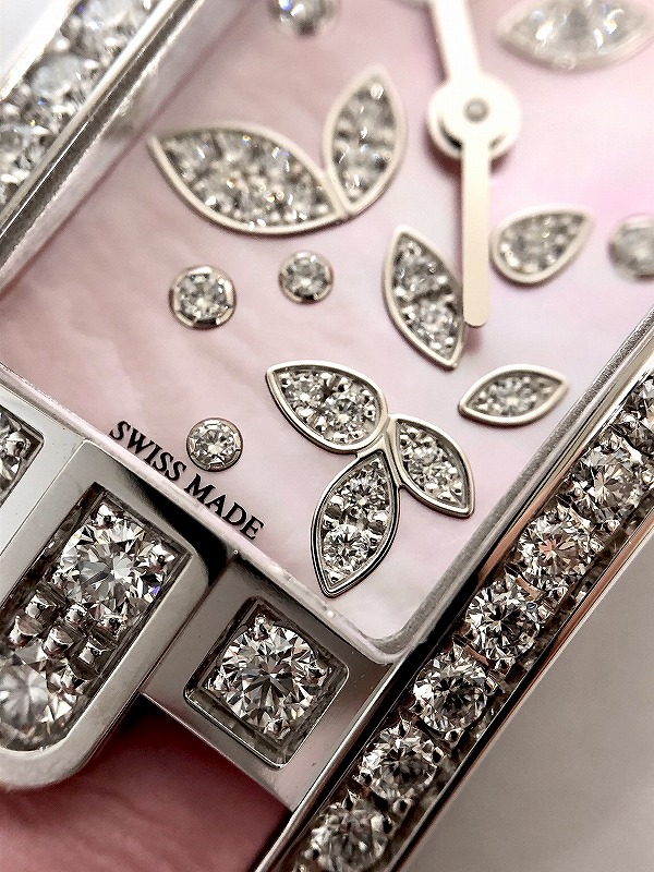 品名:アヴェニュー シーミニ リリークラスター ピンク/品番: AVCQHM16WW055/ムーヴメント:クオーツ/ケース:ホワイトゴールド/防水:3気圧/ストラップ:ピンクパール・アリゲーターレザー/税込み価格:3,025,000円