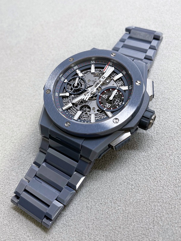 セラミックでグレーというカラーも中々少ないカラーではないでしょうか?本当にウブロの革新的な時計作りとその精神には毎回驚かされます 🙄