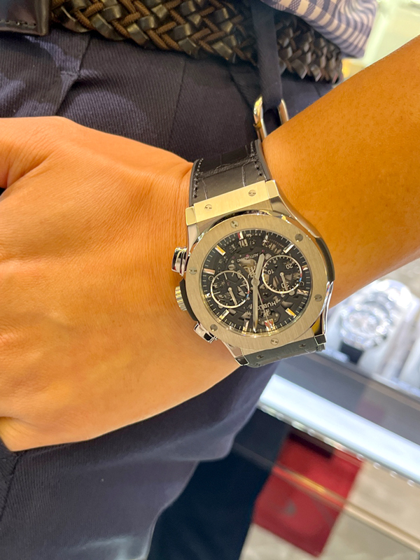 HUBLOTは以前より気になっていたそうで、スケルトンの文字盤のカッコ良さに一目惚れでした💓