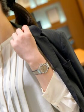 こちらはクォーツ式のため、毎日ゼンマイを巻く手間がなく、常に正確な時を刻んでくれるのも忙しい女性には嬉しいポイントです。