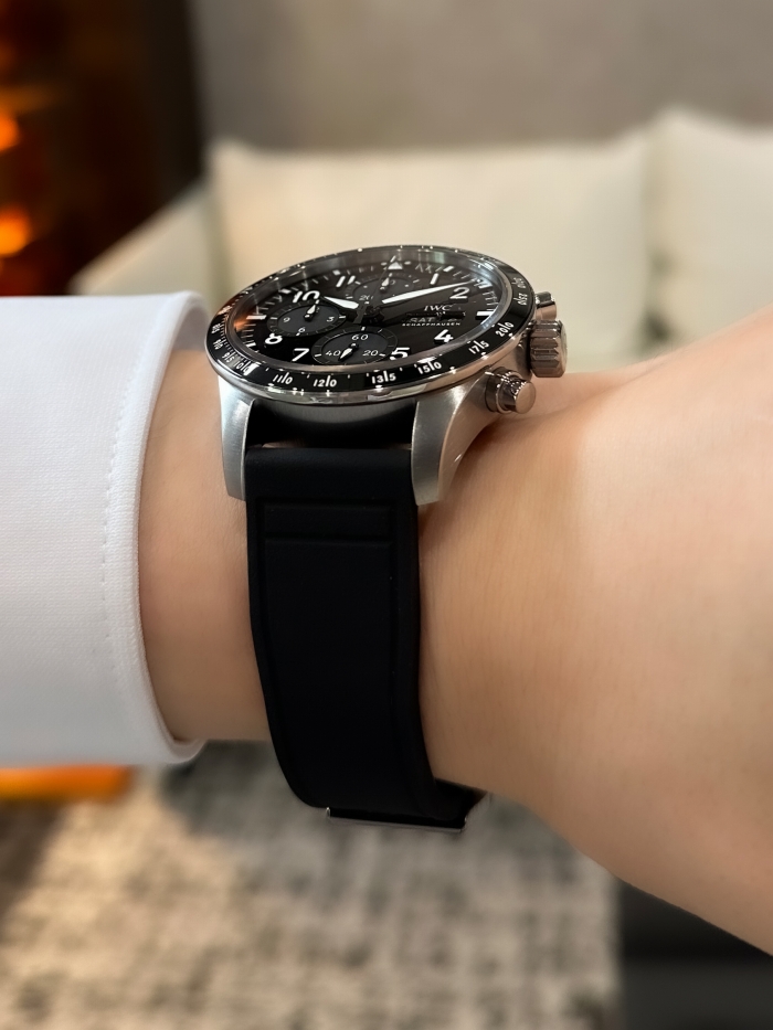 品名:パイロット・ウォッチ・パフォーマンス・クロノグラフ 41 “AMG”/品番:IW388305/ムーブメント:自動巻き IWC自社製キャリバー69385/ケース:チタニウム/ケースサイズ:41.0mm/防水:10気圧/パワーリザーブ:46時間/ストラップ:ラバーストラップ/税込価格:1,452,000円(2024年4月現在の価格です)