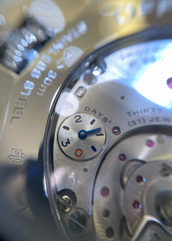 通常の時計では文字盤側にしかないパワーリザーブ表記がなんと裏側にあるんです‼️