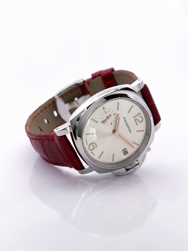 品名:ルミノールドゥエ/品番:PAM01248/ムーブメント:自動巻き/ケース:ポリッシュスティール/ケースサイズ:38 mm/防水:3気圧(30m)/パワーリザーブ:約72時間/ストラップ:アリゲーター シャイニー レッド/税込価格:913,000円(2023年12月現在)