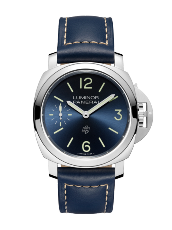 ブルーのダイアル・ストラップによってパネライの気品が際立つルミノール ロゴ。