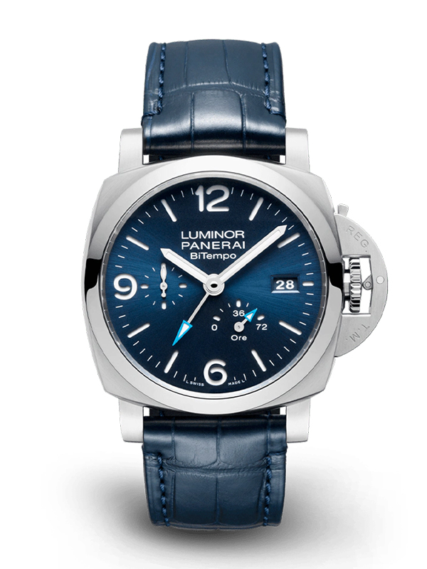 ブラックのダイアルに明るいブルーのGMT針がアクセントの『ルミノール BiTempo』。