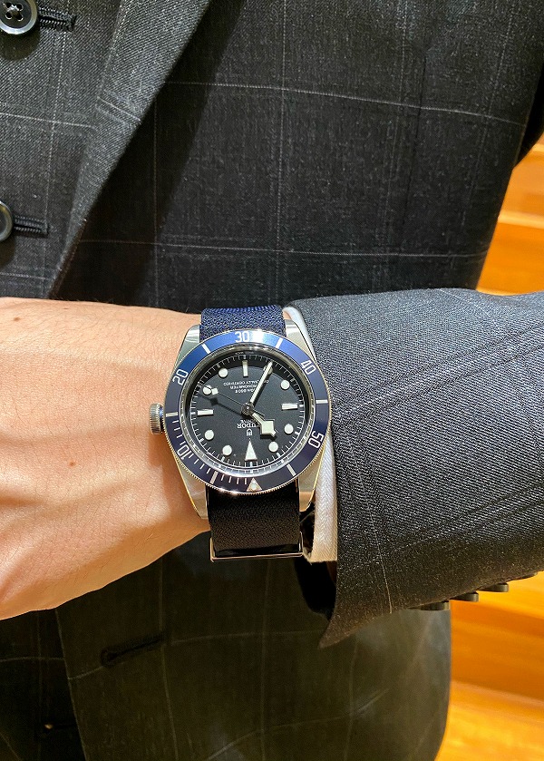 TUDOR BULE(チューダーブルー)と呼ばれるカラーが爽やかでビジネスにもカジュアルにも活躍してくれるタイムピースです。