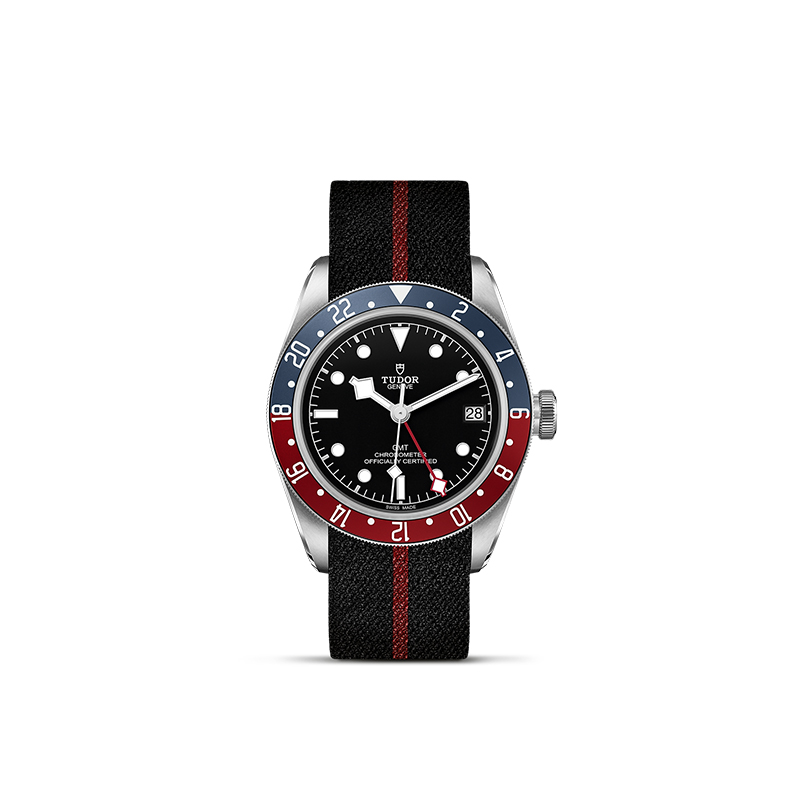 品名:BLACK BAY GMT/品番:M79830RB-0003/ムーブメント:自動巻き マニュファクチュール キャリバー MT5652 (COSC)/ケース:スチール製ケース/ケースサイズ:41mm/防水:200m (660フィート)防水/パワーリザーブ:約70時間/ブレスレット:ブラック ファブリックストラップ、バーガンディバンドとバックル/税込価格:568,700円(2024.9月現在)