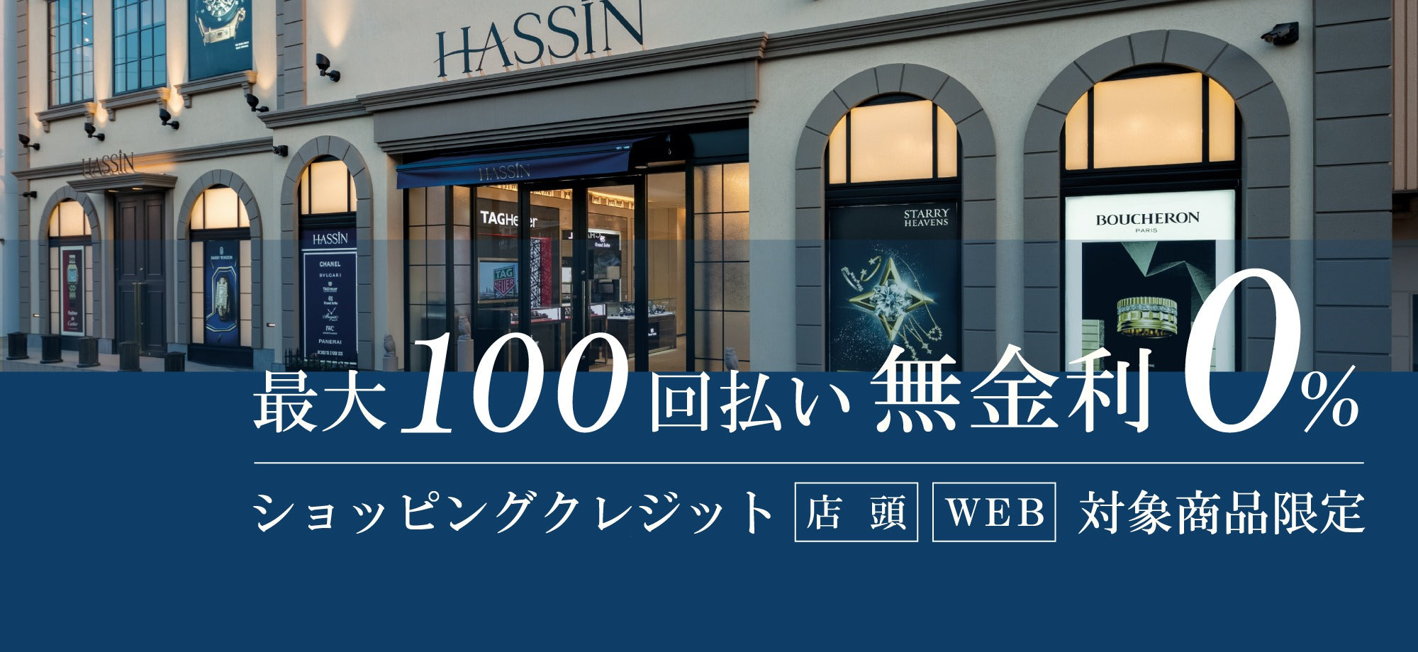 店内ウォッチ、ジュエリー対象商品につきまして、ショッピングクレジット最大100回払いまで無金利にてご購入いただけます。1回から100回まで、お好きな回数(ボーナス併用可)をお選びください。ご利用は店頭お申込みまたはWEBにてお申し込み頂けます。お客様のプランに合わせてご利用ください。