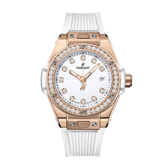 宇宙のはじまりである大爆発を由来にしたBIG BANGシリーズは、ウブロを象徴するコレクション。中でもケースサイズが38mmのモデルはビッグ・バンの中でもっとも小ぶりで、華奢な女性でもカジュアルに身につけることができます。ダイヤモンドを散りばめたラグジュアリーなデザインや、フェミニンなカラーリングのデザインも展開されているため、女性への贈り物にも最適。上品さの中に遊び心も感じます。
