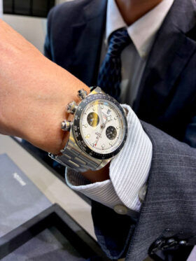 このモデルの商品一覧を見る本モデルはブラックベイ コレクションに代表されるダイバーズウォッチ、レーストラックの女王であるクロノグラフ、その水陸の伝統を結集することで誕生した。初期のチューダー クロノグラフに着想を得たプッシャーを備えたスチール製ケースや、タキメーターを備えるサテン仕上げのスチール製ベゼルにより、このスポーティでありながらも美しいデザインが作り上げられている。